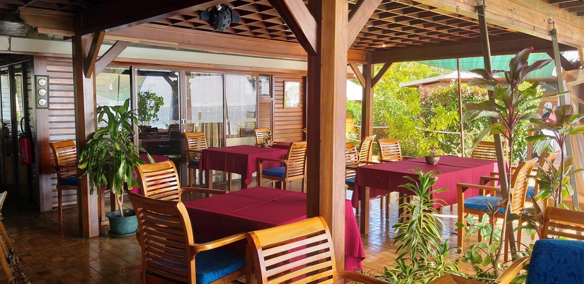 Built on the edge of the lagoon, this small family hotel embodies paradise. The bungalows are built out of Bali wood, whilst the walls are adorned with wicker and ceilings covered in peue (fine braid).