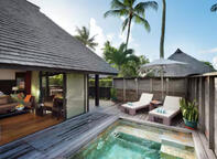 Offering privacy and seclusion, the Deluxe Garden Pool Bungalows feature an enclosed terrace featuring a private plunge pool and outdoor seating area this Polynesian-style bungalow is ideal for spending lazy days relaxing poolside without prying eyes. The interior is decorated in a traditional island style with bright colours, dark woods and bamboo touches. There is a separate seating area as well and an elegant marble bathroom with rain shower and separate claw footed bath tub.