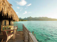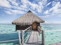 Sitting out over the lagoon but closest to the beach and the resort, these bungalows offer views of the lagoon or the mountains of Moorea. No matter the view, each bungalow has a private sun deck with sunloungers and direct access to the lagoon. The traditional Polynesian-style bungalow features a spacious interior with a glass floor viewing panel in the sitting area where you can relax and watch the underwater marine life glide on by. For the ultimate luxury indulge in the marble bathroom with a rain shower and separate claw footed bath.
