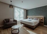 Located just steps from restaurants, shops, and major attractions the city studio room is an ideal base. With a queen-size bed, a convertible armchair, a kitchenette, and a dedicated workspace, it comfortably accommodates up to three guests. Modern conveniences include air-conditioning, Wi-Fi, satellite TV, and a private bathroom with shower.
