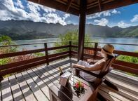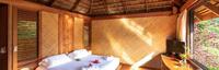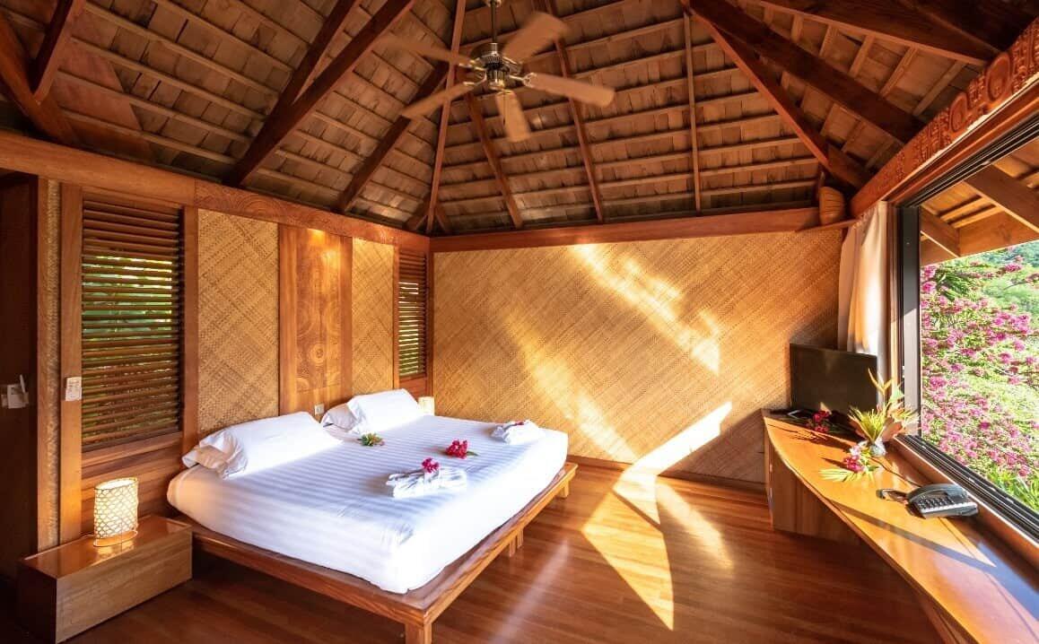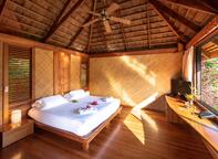 The Garden Bungalows are located within the lush tropical grounds of the lodge and offer refreshing views of the gardens from the large patio. Inside the bungalows feature a spacious bedroom area, en-suite bathroom with an indoor shower and a traditional Polynesian decor finished with art by local Marquesan artists.