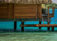 Located at the end of the pontoon these Overwater Bungalows offer uninterrupted views out over the lagoon and the motus of Bora Bora from the private balcony, which also has direct access to the crystal clear waters of the lagoon. Inside the bungalow, the sitting area features a glass coffee table to admire the underwater world beneath, a spacious bathroom with separate shower and complimentary toiletries and a tropical decor which will have you immersed into island time in no time.