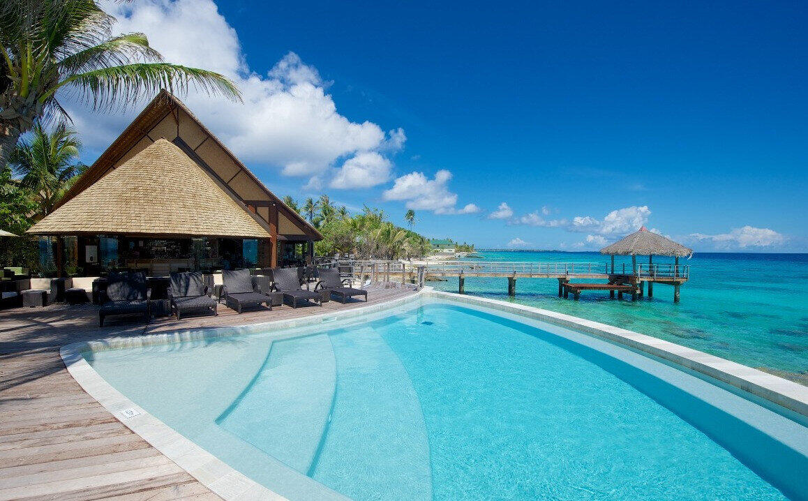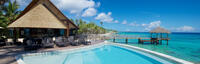 Resting between sky and sea, Rangiroa is a world by itself! It is a genuine natural aquarium, a mecca for scuba divers from around the globe, and claimed by many as the richest and most beautiful lagoon in the world. Nestled in a coconut grove, Hotel Maitai Rangiroa is located between the passes of Avatoru and Tiputa, facing a magnificent lagoon with infinite tones of blues. From the resort pontoon, you can access directly some very nice snorkelling spots; the underwater show is just outstanding. The accommodation style is stand alone bungalows dotted throughout the resort gardens or on the beach. With traditional thatched roofs and a typical Polynesian decor the bungalows offer space, privacy and quality facilities.