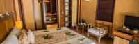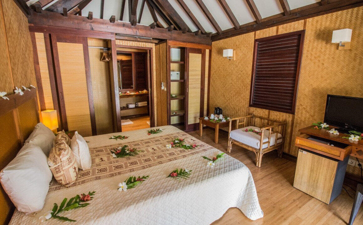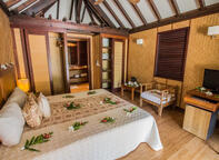 Located right on the waterfront the traditional Tahitian-style Lagoon Bungalows offer stunning views of the waters of the lagoon. Sit back on your private patio and marvel at the shades on blue and the white sand of the beach in front of your bungalow. Inside the interior is spacious, comfortable and decorated in a tropical decor with bright colours.