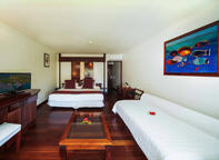Perfect for families, the Family Garden Duplex rooms are located in the main building, a two story thatch block just a short stroll to the beach and set within the tropical gardens of the resort. Featuring a mezzanine level and a balcony with a garden view, they offer all the comfort and facilities needed for a family stay.