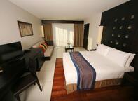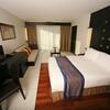The lead in room, the Standard Room is comfortable, features modern furnishings and a sleek design. The private balcony offers views towards the mountains of Tahiti.