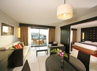 The Junior Suites offers a kitchenette with oven, stove,fridge, tea and coffee facilities. Plus modern furnishings and a sleek design. The private balcony offers views towards the mountains/city of Tahiti.