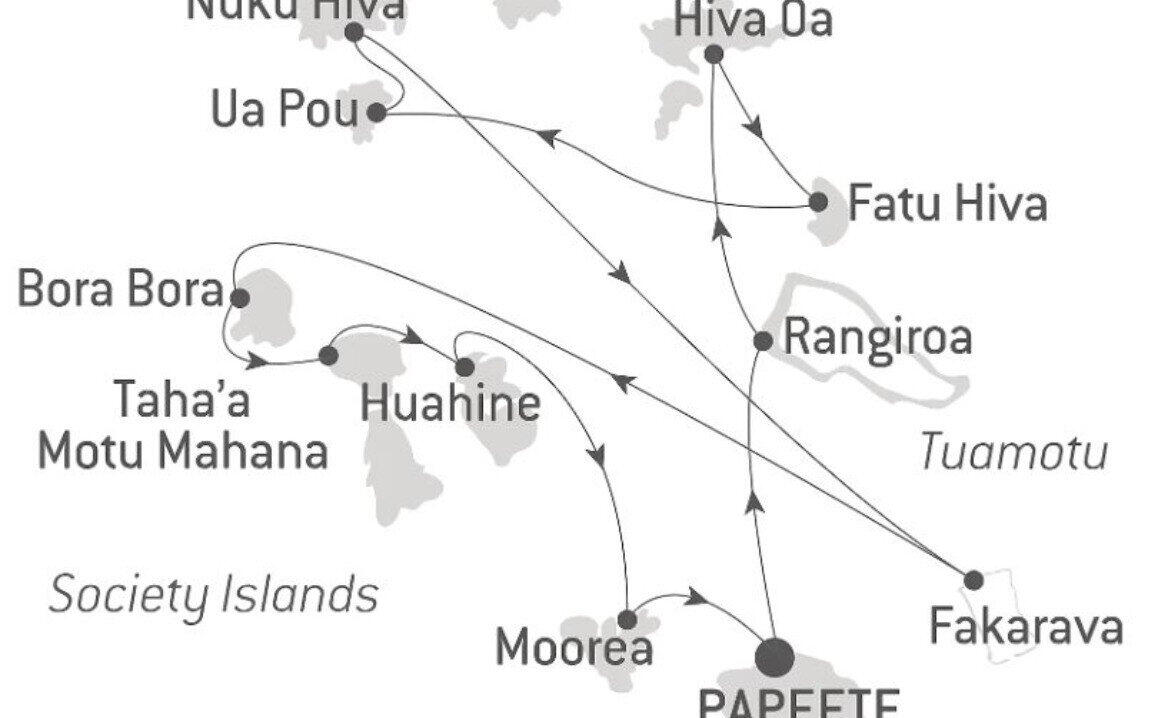 From the gems of the Society Islands to the heart of the Tuamotus and the unique charms of the Marquesas, this exceptional 15-day voyage crosses extraordinary landscapes and cultural treasures.