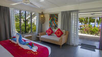 5 absolute Beachfront Suites with stunning views to the sparkling ocean and white sands. Polynesian inspired interiors, air conditioned with plush Sleepyhead beds, crisp linen sheets, and your own private veranda to relax or enjoy a sunset cocktail delivered to your room.