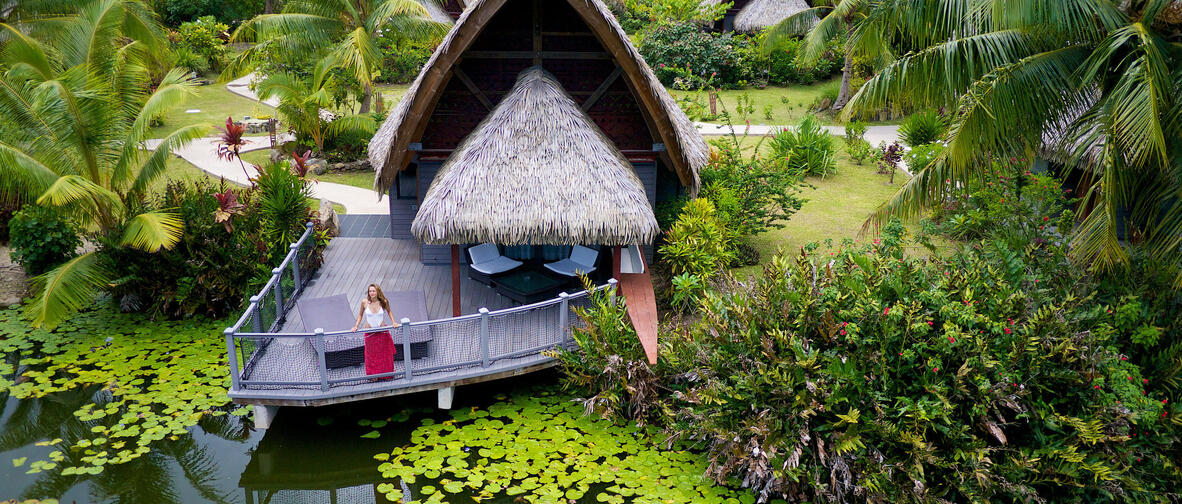- 5 nights accommodation at Maitai Lapita Village Huahine in a Garden Bungalow with Pool