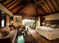 Sitting out over the lagoon but closest to the beach and the resort, these bungalows offer views of the lagoon or the mountains of Moorea. No matter the view, each bungalow has a private sun deck with sunloungers and direct access to the lagoon. The traditional Polynesian-style bungalow features a spacious interior with a glass floor viewing panel in the sitting area where you can relax and watch the underwater marine life glide on by. For the ultimate luxury indulge in the marble bathroom with a rain shower and separate clawfoot bath.