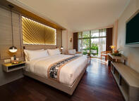 This lead in room type features modern furnishings with a bright tropical decor. There is a spacious indoor seating area and views overlooking the resort grounds. There is no blacony in this room type.