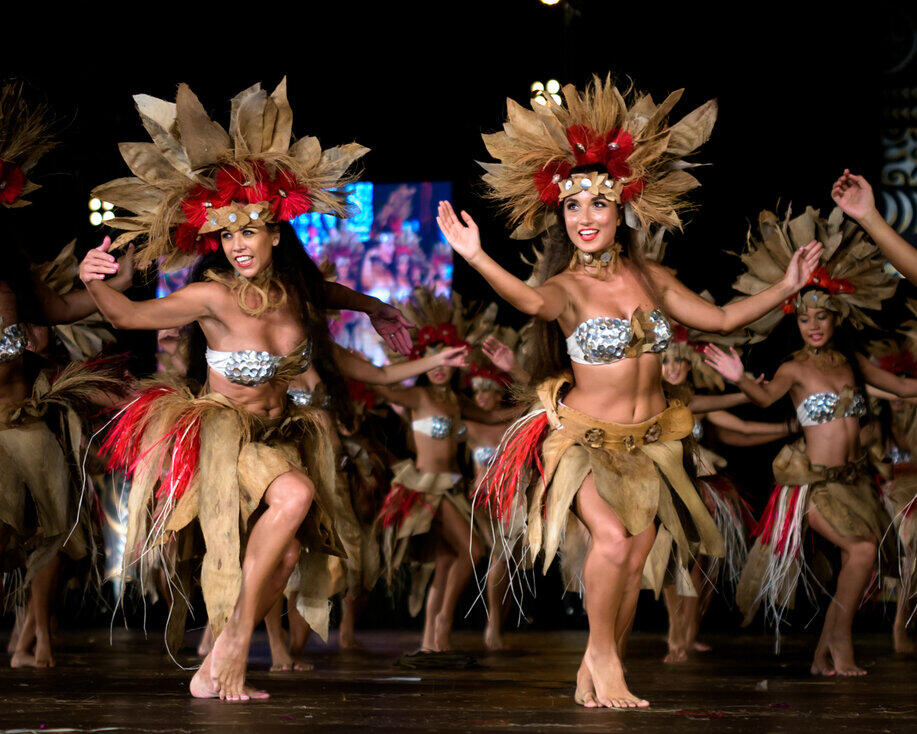 “Ori Tahiti” Performances: A celebration of Tahiti's rich heritage, performers are adorned in vibrant costumes, made of flowers and tapa cloth, bringing Tahitian history and mythology to life.