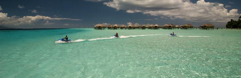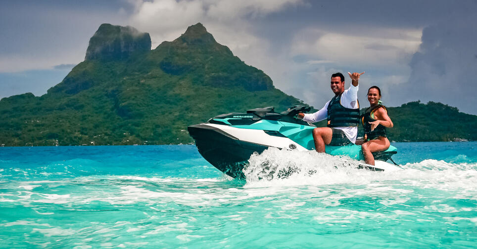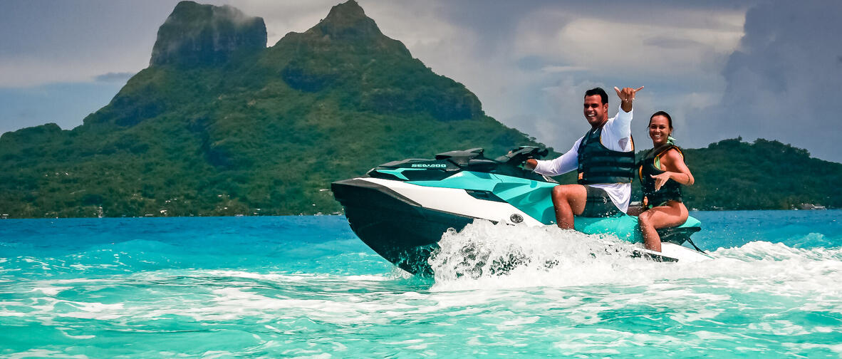 Discover Bora Bora on this full day land and sea tour. This tour combines quad biking in the mountains heading to the summit with stunning lagoon views, followed by lunch at the motu. Then head off on your jetski and explore the stunning blue waters of Bora Bora.
