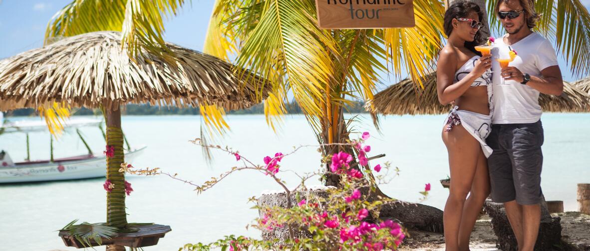 Treat yourself to an exceptional lagoon tour of Bora Bora. Aboard a private boat, explore the infinitely nuanced waters. Float among coral, rays and tropical fish. Then join a private motu for a traditional meal. Enjoy the white sand beach and calm waters. A local guide personalizes your experience. Our 25-foot Cap Camarat combines luxury and comfort for an intimate cruise. An unforgettable six-hour getaway. This tour is for romance-seeking adults only.