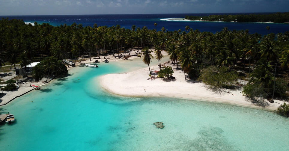 The sheltered, emerald green lagoon is a 5-minute boat ride from the village of Avatoru, behind the namesake pass. Ideal for