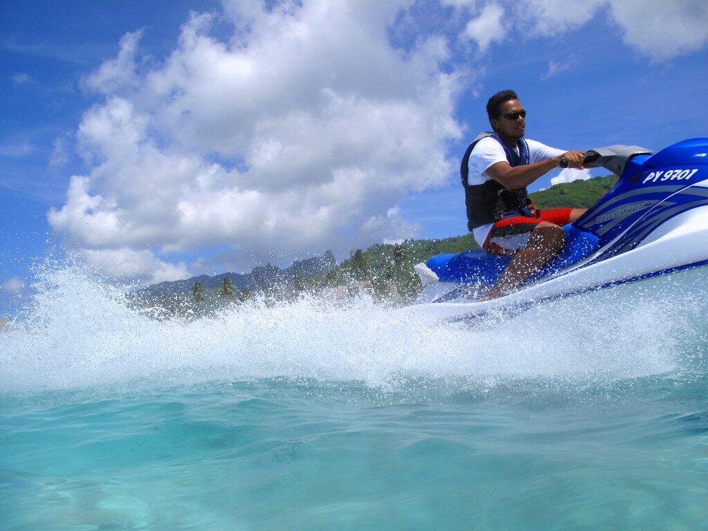 Breathtaking Nautical Activity! Full of adrenaline, thrills and fun! At the controls of your jetski, set off on a 2-hour group adventure that will take you all the way around the island of Bora Bora. In the wake of your experienced guide, you'll love the speed and glide of jetskiing, as well as the paradisiacal landscapes of the Pearl of the Pacific.