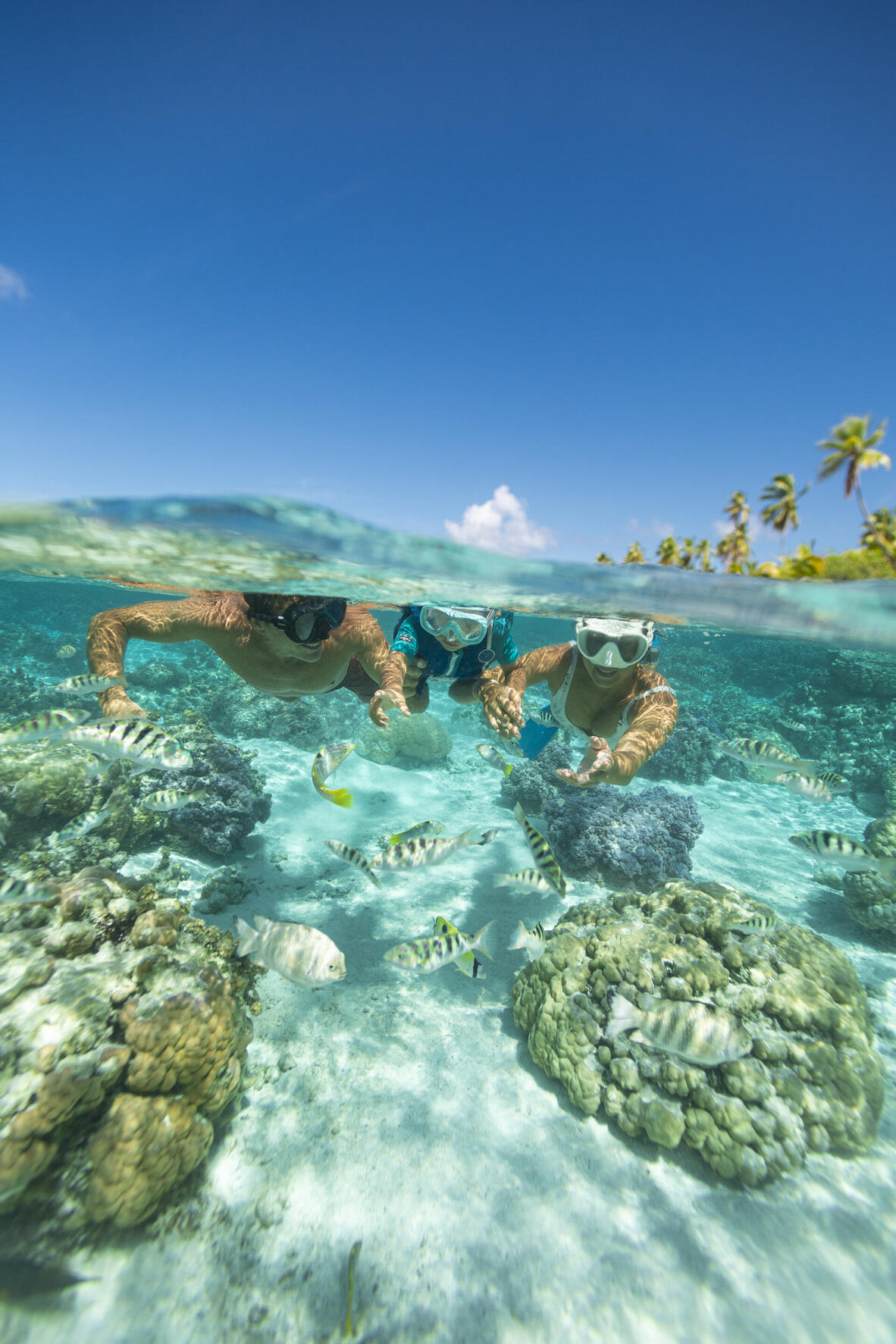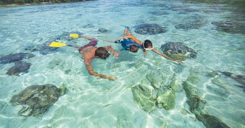 Discover different snorkelling sites in the stunning Taha'a lagoon. Swim with the sting rays, black tip sharks and experience beautiful coral gardens.