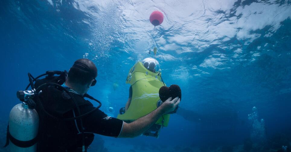 Explore the underwater world in this 2 seat mini submarine as you travel at a depth of 3 metres for about 1km.