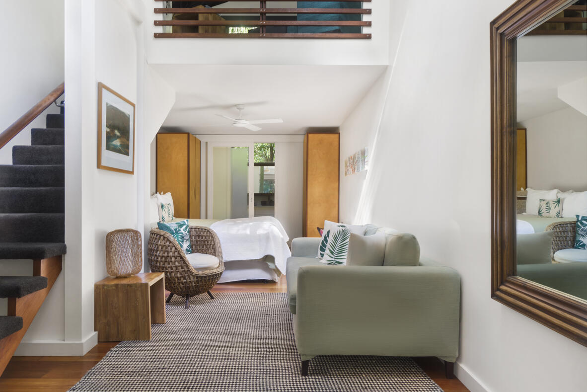 Unwind on your own private tree-top lounge located on the mezzanine level of each of the north-facing Banyan Suites. Perfectly nestled in between the trees, these beautiful suites feature a ground floor bedroom with a king-sized bed, a large ensuite and a living room in the treetops. Relax in simple luxury with the silence of the forest and the calming sounds of the ocean.