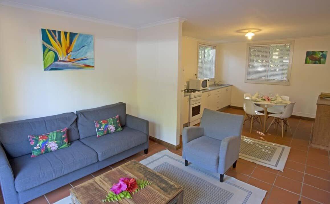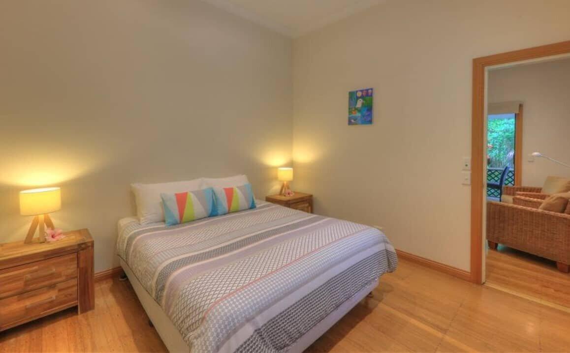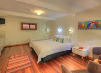 Lovely wooden floorboards giving a cosy feel with a private ensuite bathroom and well equipped kitchenette, including microwave, electric fry pan, tea and coffee making facilities. This room also features a covered outdoor patio with outdoor furniture.