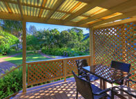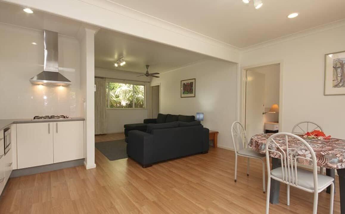 Shady verandahs overlook lush green sub-tropical gardens. There is a separate bedroom, lounge and one bathroom. All rooms contain a kitchenette which includes a fridge, microwave oven, electric frypan, tea and coffee facilities, cookware and all utensils including cutlery, toaster, kettle, and crockery. Your home away from home!