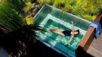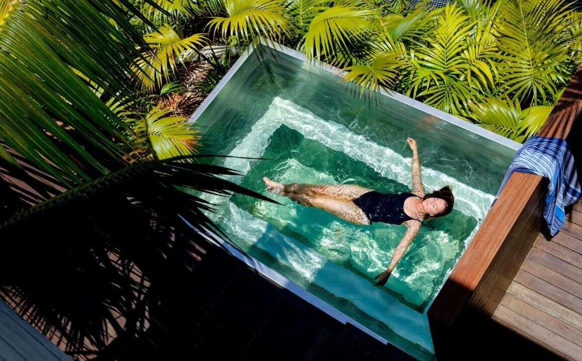 Inspired by the seafaring days of Lord Howe, this premium mezzanine suite draws mesmerising views of Lord Howe’s postcard twin peaks, Mounts Gower and Lidgbird. The suite features a generous upstairs king sleeping area with ensuite powder room, reached by a striking red spiral staircase and is an ideal retreat for two people. The living area features a lounge with fireplace and the option of additional single beds on request. A contemporary basalt bathroom is located on the lower level and a heated plunge pool, shower and cabana style daybed complements the relaxed, fun-spirited sophistication of this luxury retreat.
