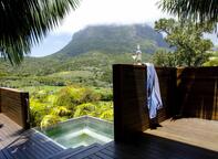 The superlative Lidgbird Pavilion is truly awe-inspiring with wrap around verandahs capturing panoramic views of ocean and mountains. A refreshing dip in the private plunge pool beckons. Extensive decks surround with daybed, rain shower and luxurious outdoor bathing in the freestanding bathtub beneath the frangipani tree. A generous upper-level bedroom area with powder room opens to wrap around verandahs capturing panoramic views. The living area features a lounge with fireplace and the option of an additional single bed on request. The basalt bathroom boasts dual stone slab vanities, rain shower, extensive timber benches and Capella Spa toiletries. There's an electric buggy reserved for exclusive use.