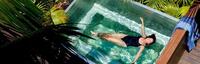 The Capella Suite features high ceilings with a beach house feel, offering cameo views of the ocean and mountains with kentia palms waving outside. Guests find a stylish refuge in this single level space, featuring king or twin bed options, a spacious ensuite bathroom, lounge area, outdoor deck with day bed and dramatic mountain and ocean views. A chic basalt dressed ensuite offers natural sky lighting and an oversized shower with generous dual heads allowing guests to rejuvenate in the remarkably soft, pure Lord Howe rainwater.