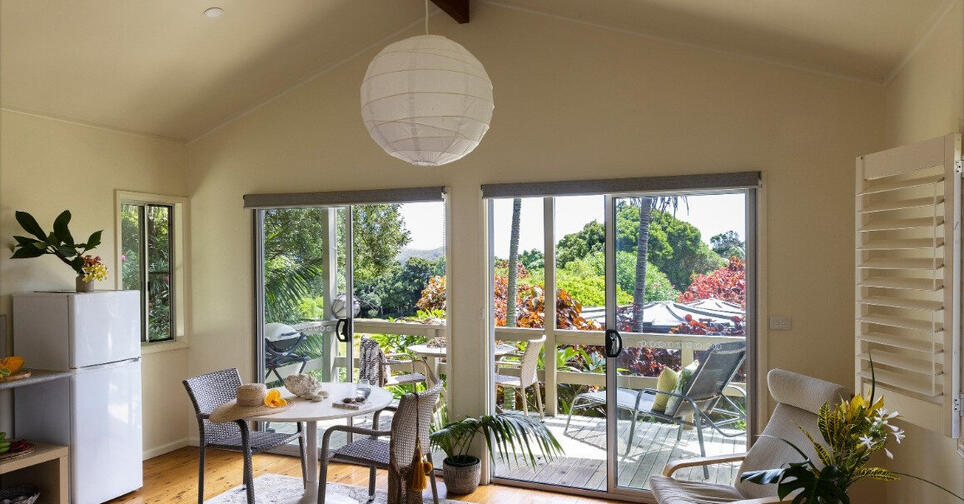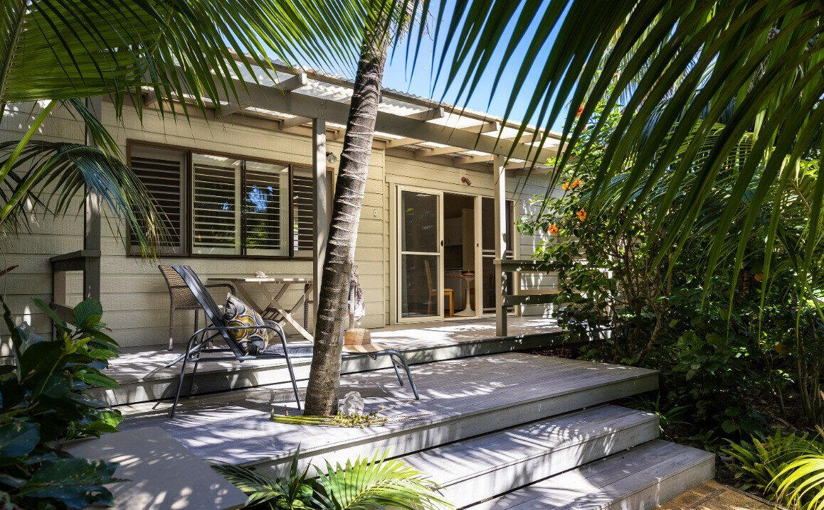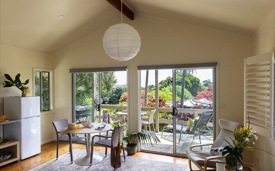 Ebbtide's sunfilled apartments are furnished for all your holiday needs offering simple stylish comfort suited to the natural beauty of the island. There are three spacious garden units which are adjoined but have ample privacy in the layout of the rooms. All the rooms have full kitchens with a gas cooktop and oven, separate living, bedroom and ensuites. There are no TVs at Ebbtide but there is an excellent library, bluetooth speakers and iPod docks in each unit.
