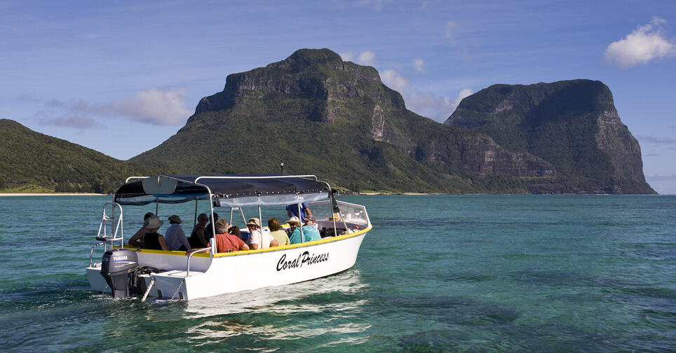 View the pristine beauty of one of the world's untouched reef systems. Learn about this unique marine environment and discover a new world on a glass bottom boat tour. This tour focuses on exploring the coral seascape and introduces visitors to some of the more unusual lagoon inhabitants such as the endemic double-header wrasse, stingrays and turtles. An optional snorkelling experience at Erscott’s hole is available or you can just relax on the boat and view the stunning diversity of this exotic marine location.