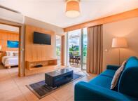 These ocean-inspired suites offer calm and comfortable surroundings in a light and spacious setting. Featuring a seperate living room, kitchenette and a private balcony with table and chairs these rooms are perfect for families. There is one suite on the first floor with special disabled facilities. These suites have partial sea views.