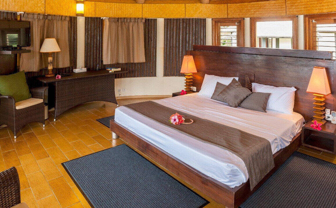 The Traditional Hut is bigger than the other bungalows and features a pleasant “rounded”Melanesian style and a nice big terrace which faces the beach and ocean.