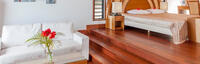 The Garden Bungalows are perfect for a calm stay in the heart of nature. They come in two sizes to accommodate 2 or 4 people. The smaller bungalows are 41m2 with a 10m2 verandah and the larger bungalows have the same facilities but measure 66m2 internally.