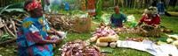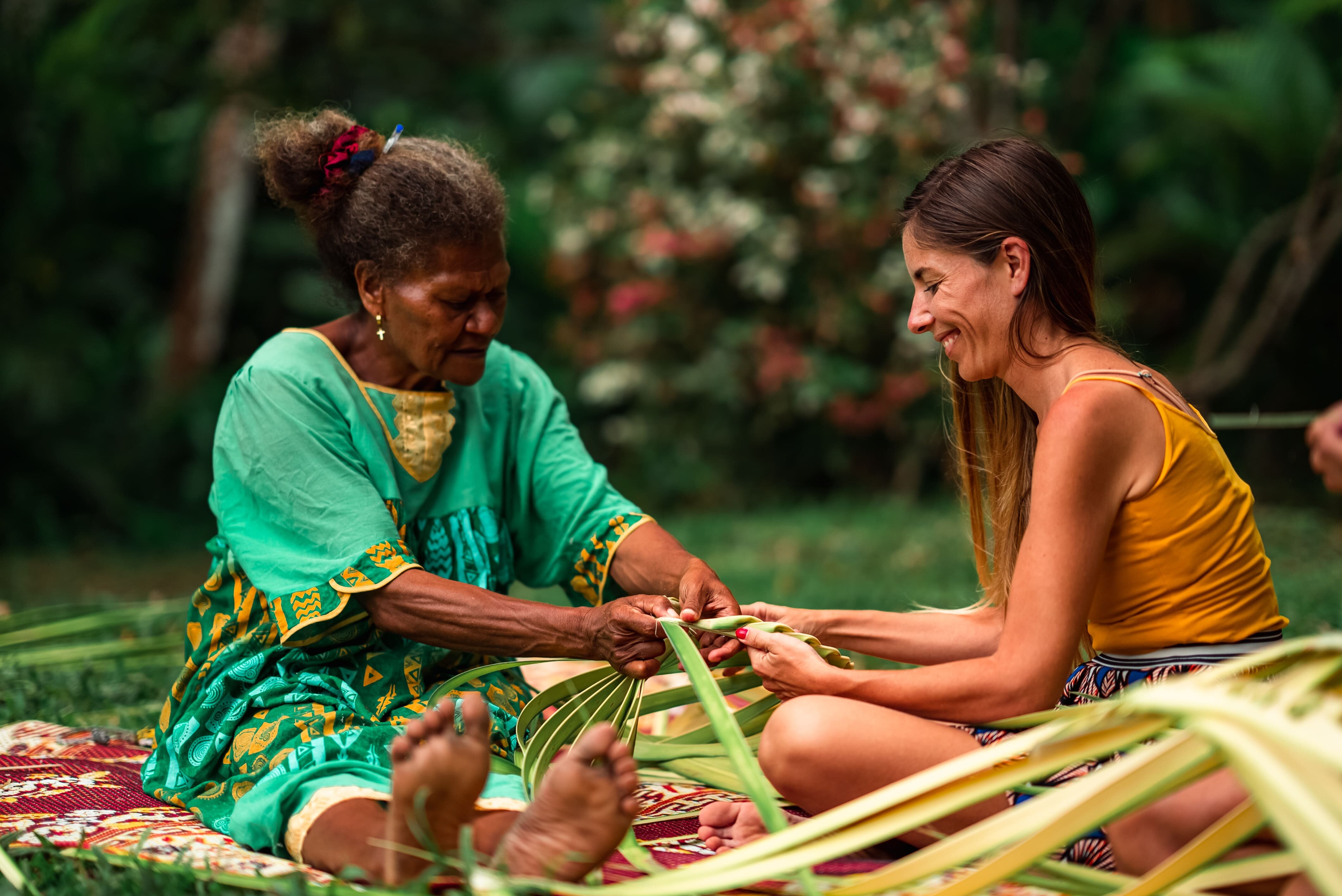 This full day tour takes you to Bourail where your day starts with a Tribe Welcome before helping the local women prepare the Kanak dish “Bougna”. Meet ‘Mr Coffee’and learn the different steps of the traditional transformation method from cherries to beverage before heading to the mountains and the home of the Ny to discover their story and traditions. After lunch there is time for palm frond weaving lessons before returning to Noumea.