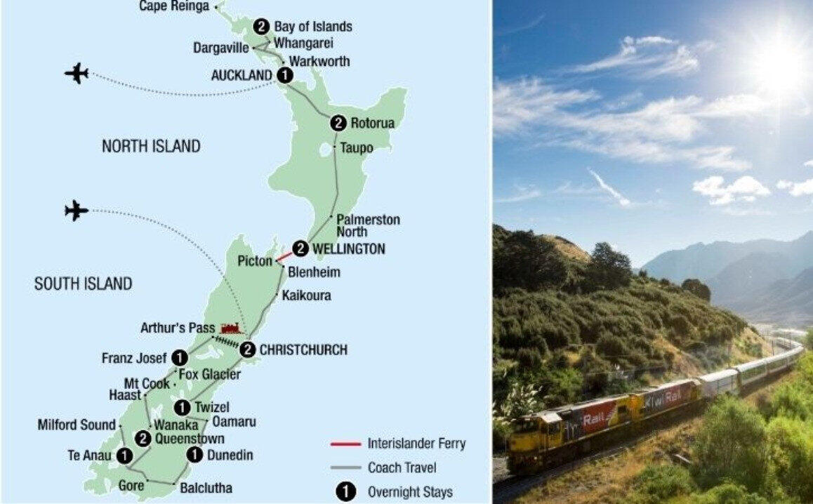 Embrace both islands of New Zealand including the stunning Bay of Islands.