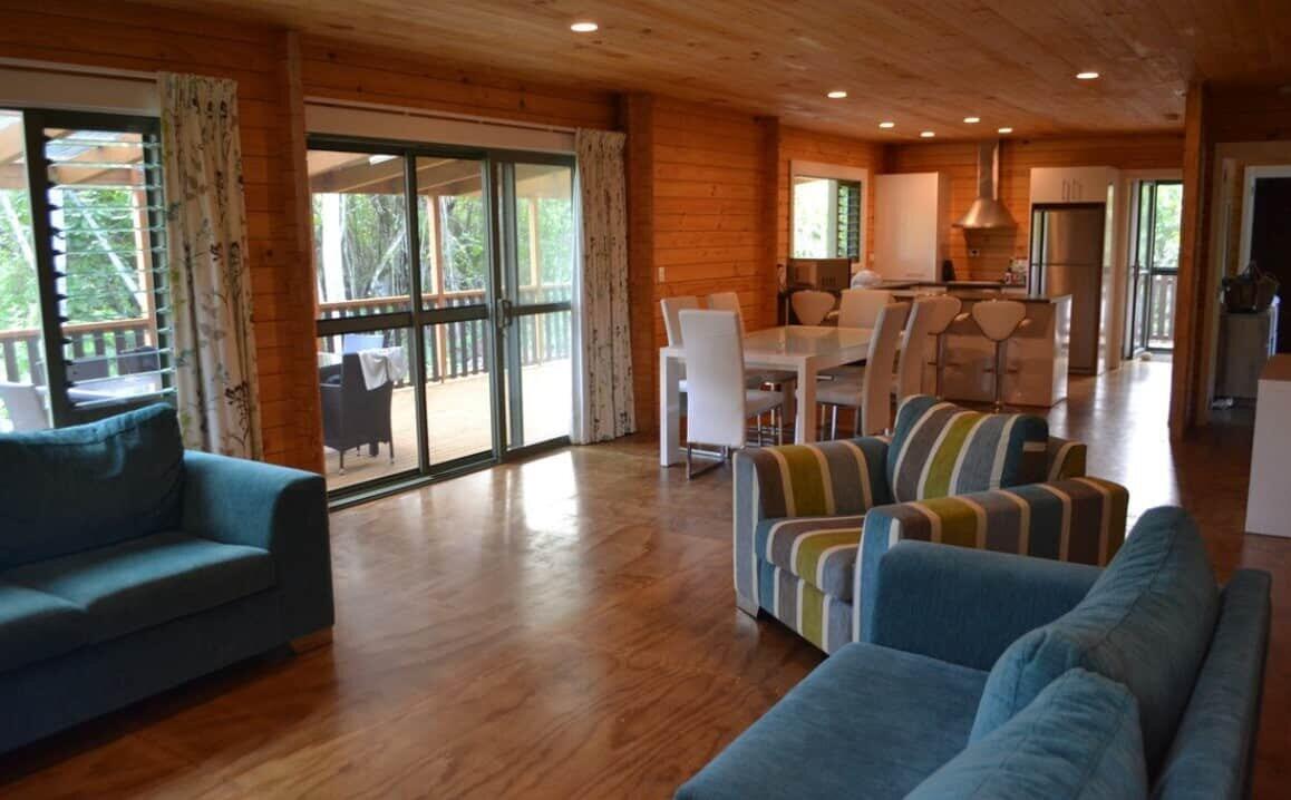 The three bedroom villa features a spacious open plan living/dining area, full kitchen including dishwasher and microwave, laundry including washing machine, dryer and iron, two bathrooms, an additional toilet and a private alfresco dining deck with BBQ and seating for up to eight.