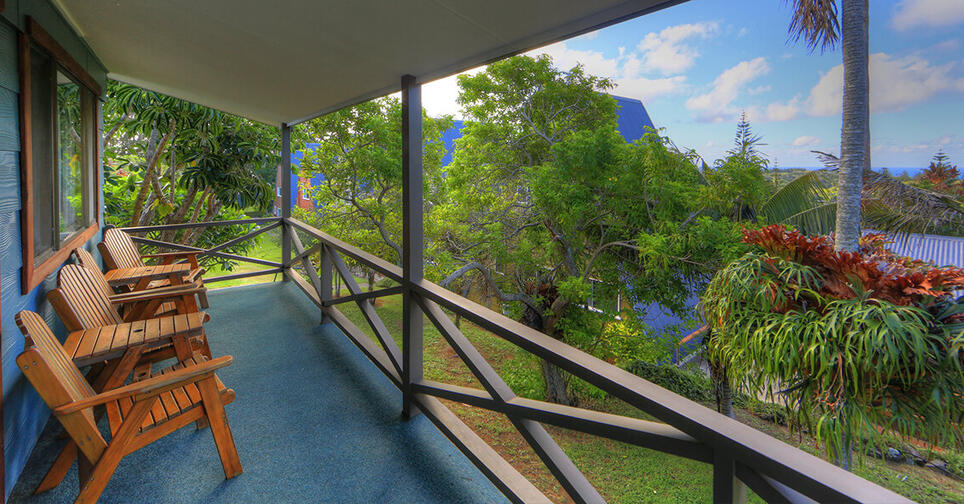 These iconic A-Frame chalets are among Norfolk’s most recognisable accommodation. Each chalet is equipped with a separate lounge room with a dining area, full kitchen, en suite bathroom, phone, TV and DVD, and verandah with outdoor seating.