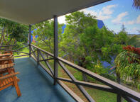 The two bedroom Mokutu suite has amazing views of the ocean and mountains. Your suite has a separate lounge and dining area plus a full kitchen. There is a DVD, TV, phone and sofa in the suite with outdoor seating on the verandah.