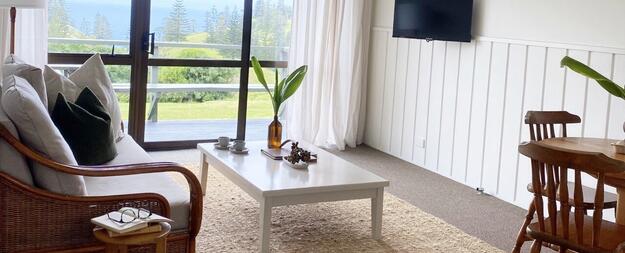 The accommodation is fully equipped with all the modern appliances and conveniences. Our one bedroom all face east, and have great views over Cascade Valley, looking over to the Pacific Ocean. A great place to relax while on your Norfolk Island holiday.