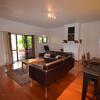 The living room leads out onto a verandah which looks onto the lush gardens.
