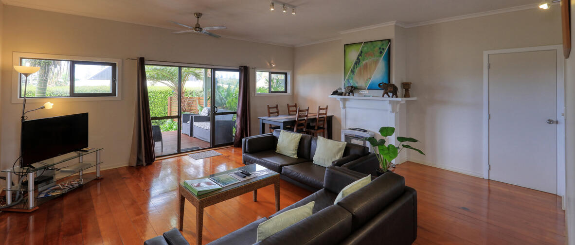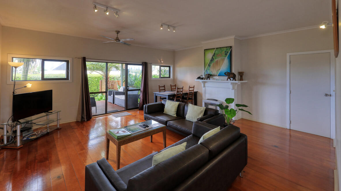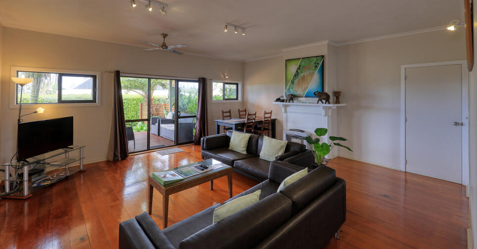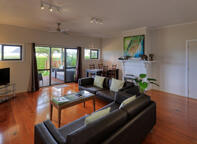 The large living room has an L-shaped couch with chaise, fireplace, large dining room with huge Norfolk Pine table with ten dining chairs. Several LCD TV's, CD & DVD players, Foxtel Satellite Cable TV.