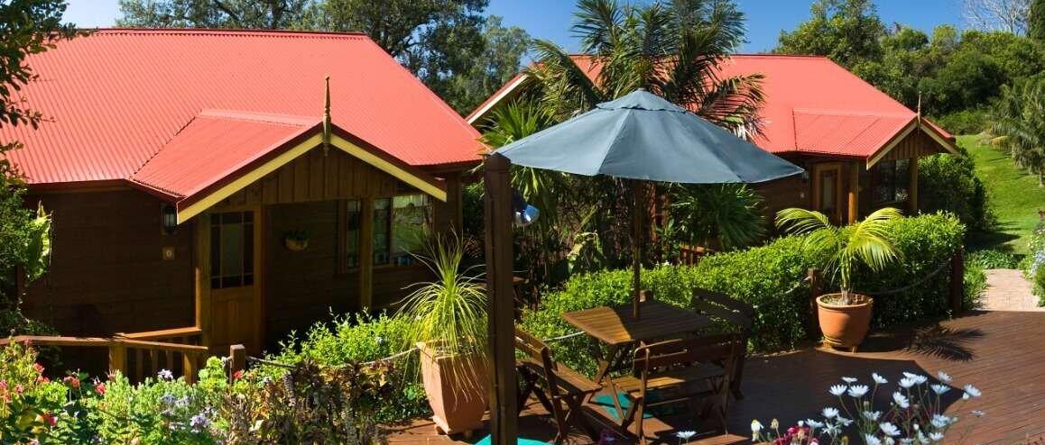 Locally owned and operated, the property features five beautifully appointed timber cabins immersed in landscaped gardens, each with glimpses through to the ocean.