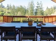 Beefsteak Homestead is a stunning property set on 50 acres of lush green landscape, offering privacy and breathtaking views. There are three bedrooms and two bathrooms which comfortably accommodate up to 6 persons. The house has a large fully equipped modern kitchen, open plan living area including a cozy fireplace, and dining area that opens onto the extensive deck.