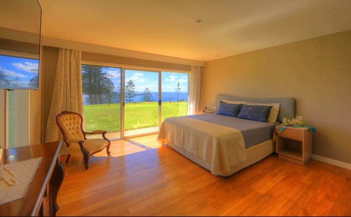 The beautiful, single-storey villas are discreetly positioned to offer the best views on the island, while maintaining complete privacy. Comfortably furnished, with wide balconies –perfect for those barbecue nights under Norfolk Island’s legendary dark skies –you’ll immediately feel right at home and ready for a relaxing and enjoyable holiday. Villas feature huge floor-to-ceiling windows to drink in those views, private north-east facing deck, 110m2 of open-plan private living space, one king-size bedroom with walk-in dressing room, a superbly appointed en suite bathroom with a full-length bath and separate shower, modern fully equipped kitchen, with stove, microwave and dishwasher, full laundry, linen, plus beach towels, Weber gas barbeque, Wi-Fi, iPod dock, library, 24/7 access to the Shearwater Spa House, for the exclusive guest use. There are 3 of this room type.