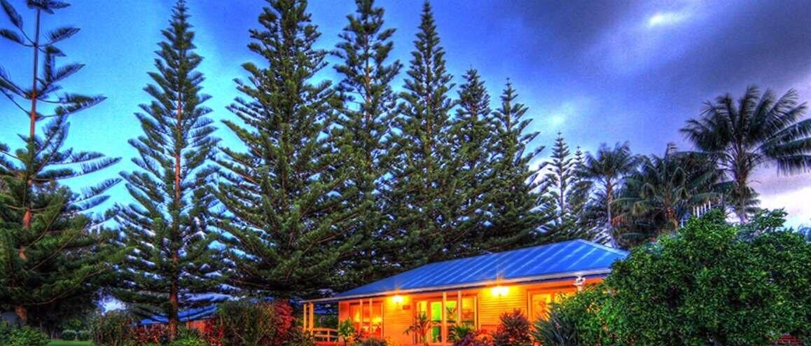 Its peaceful rural location is just seven minutes from Norfolk Island’s main shopping precinct, Burnt Pine, the Kingston and Arthur’s Vale Historic Area and beautiful Emily Bay. The four self-contained cottages are set in stunning subtropical gardens with views across Norfolk’s lush green pastures towards Mount Pitt, the highest point of the island.