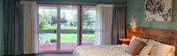 The bespoke two-bedroom cottage has a bedroom at each end of the building and a lounge, kitchen and laundry in between. Find Ena bath products (handwash, hand and body lotion, shampoo and conditioner), and locally made anti-irritant washing powder. Each king size bedroom opens onto the full-length verandah and each has its private en-suite bathroom and walk-in wardrobe. King bedding is standard however king single beds can be arranged to suit guest requirements. There are ramps to all cottages. One cottage will have a disabled bathroom from September 2024.