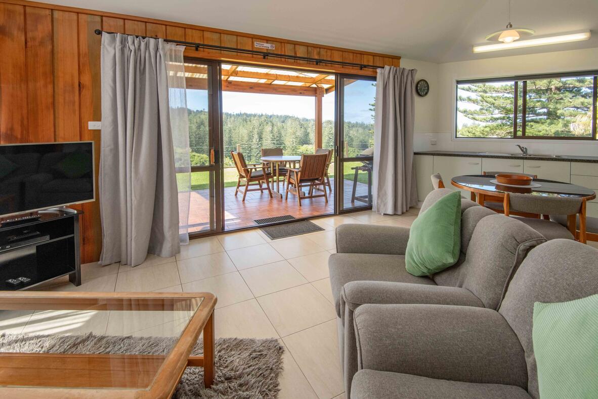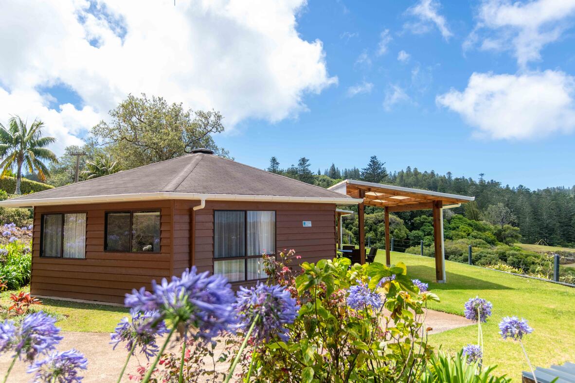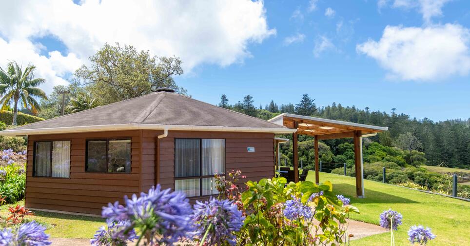 Whispering Pines Cottages has two 2 Bedroom/1 Bathroom self catering cottages. Each cottage has its own verandah that looks out across the landscape of valleys and the slopes of the Norfolk Island National Park, covered in Norfolk Island Pines. These two-bedroom cottages are self-contained with an open-plan kitchen, living and dining area. The kitchen is modern and is well equipped for you to enjoy preparing your own meals, complete with an oven, stove, microwave and refrigerator. Parking is available on-site, free of charge and each verandah has a barbeque, outdoor furniture with stunning valley and distant ocean views.