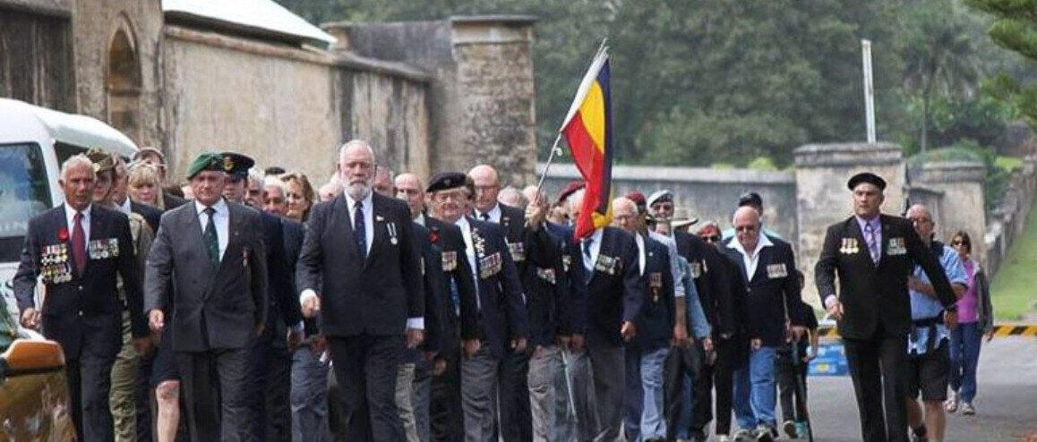 Mid-morning veterans and family representatives assemble at the Officer’s Bath in Quality Row to commence the march to the Cenotaph for the mid-morning service. A traditional ANZAC Day lunch is held at the Norfolk Island RSL followed by a game of 2up.