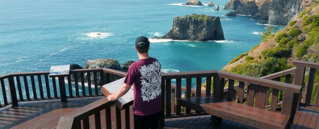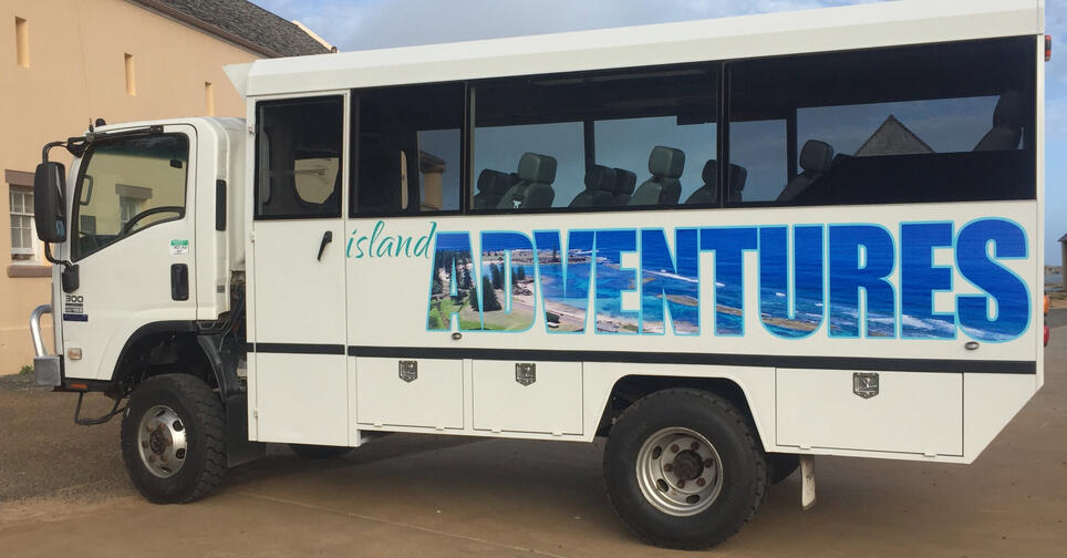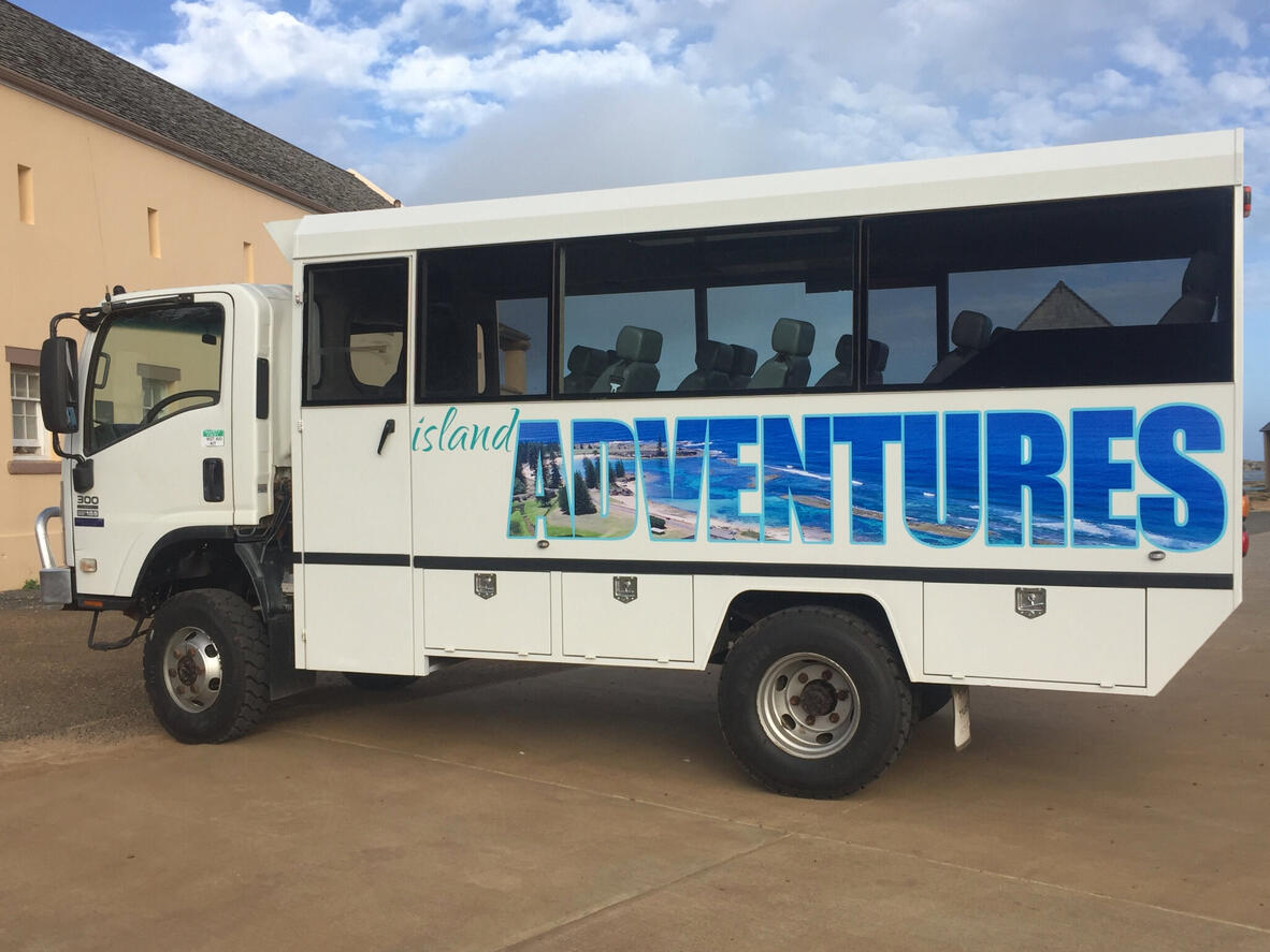 Climb aboard an 18 seater 4x4 bus for a pioneering adventure “Off the beaten track”. This 4WD tour takes you through Norfolk's National Park. Travel through a private paddock past an old convict well on your way to visit the Watermill Dam. Stop off at a Norfolk Island Pine family home for stunning views at the edge of a cliff. Observe first hand the many different species of the island's sea birds including several Mutton Birds' nest as well as view a stump of a Hollow Norfolk Island pine complete with the knots still on it. Travel along the cliff edge and look down onto a lush valley full of seabirds nesting in the pines. Make your way out to Simons Water Reserve where you will meander your way through trees and past cattle to the cliff edge to see the sights of Cascade Bay and across to Elephant Rock and the blow hole. Morning tea is included along the way at an Island Home.